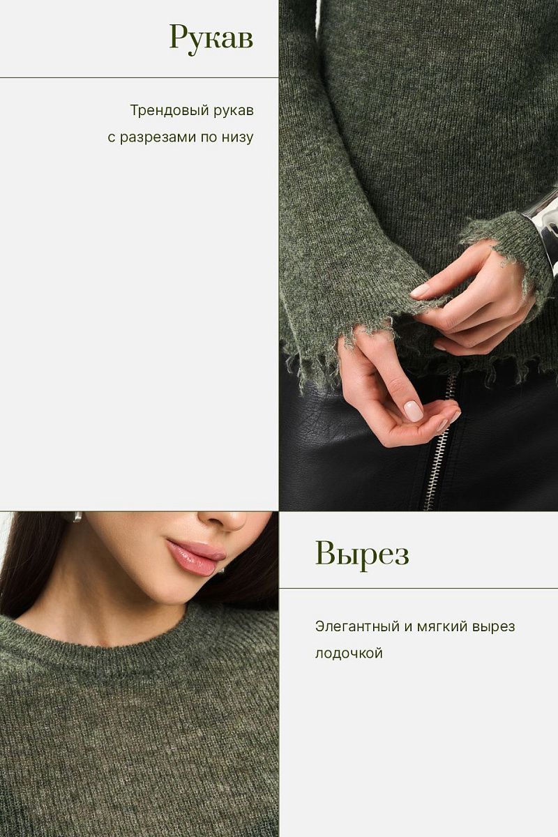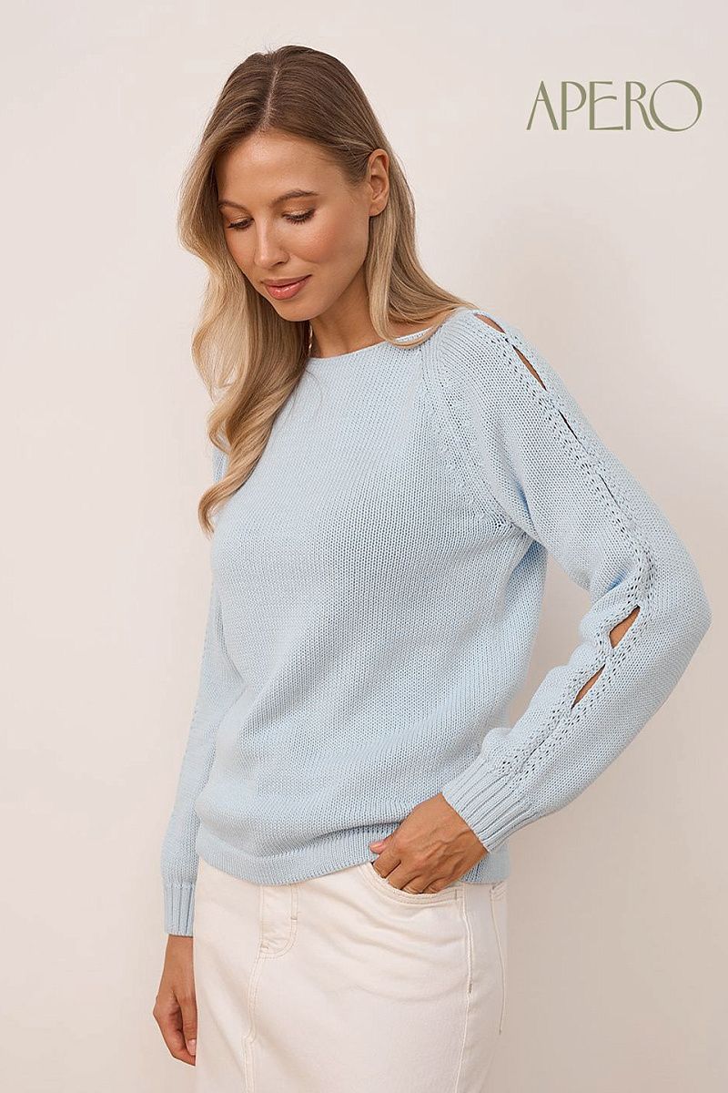 Джемпер вязаный с вырезами на рукавах