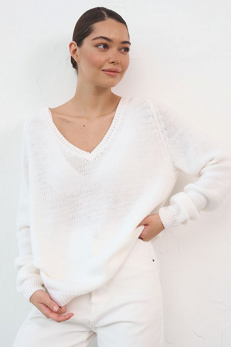 Джемпер вязаный теплый с V образным вырезом