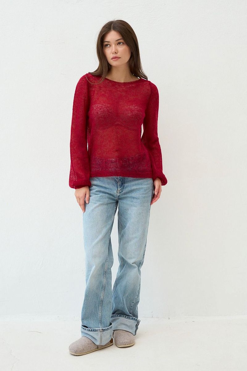 Джемпер тонкий прозрачный вязаный из мохера и шерсти
