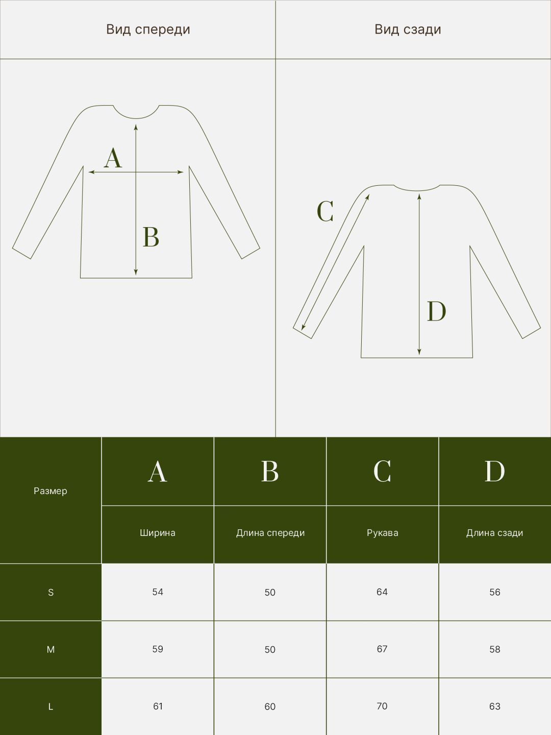 Таблица размеров