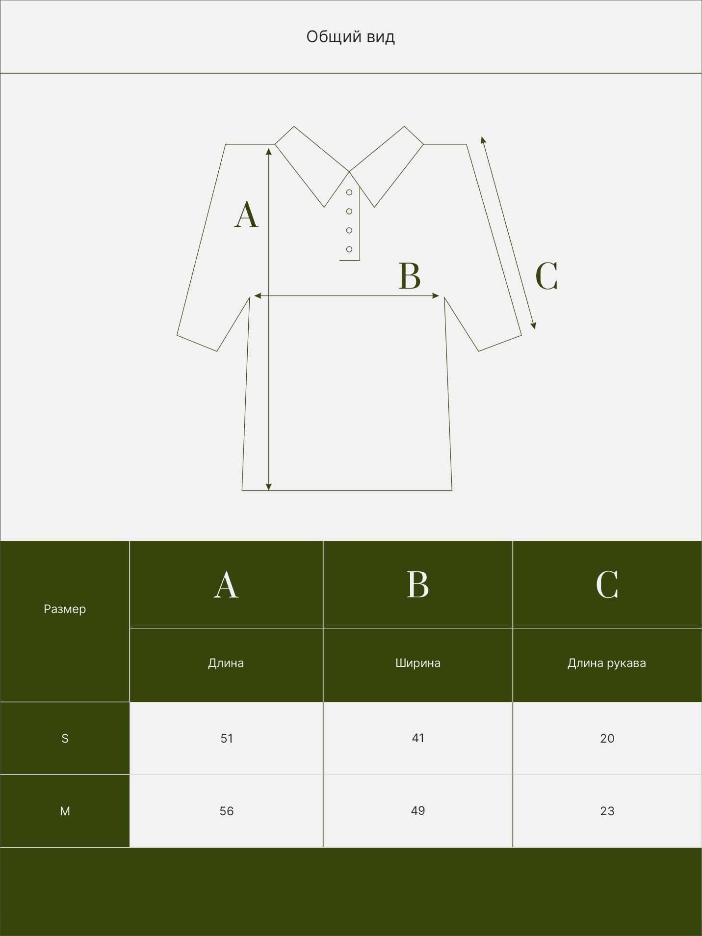 Таблица размеров