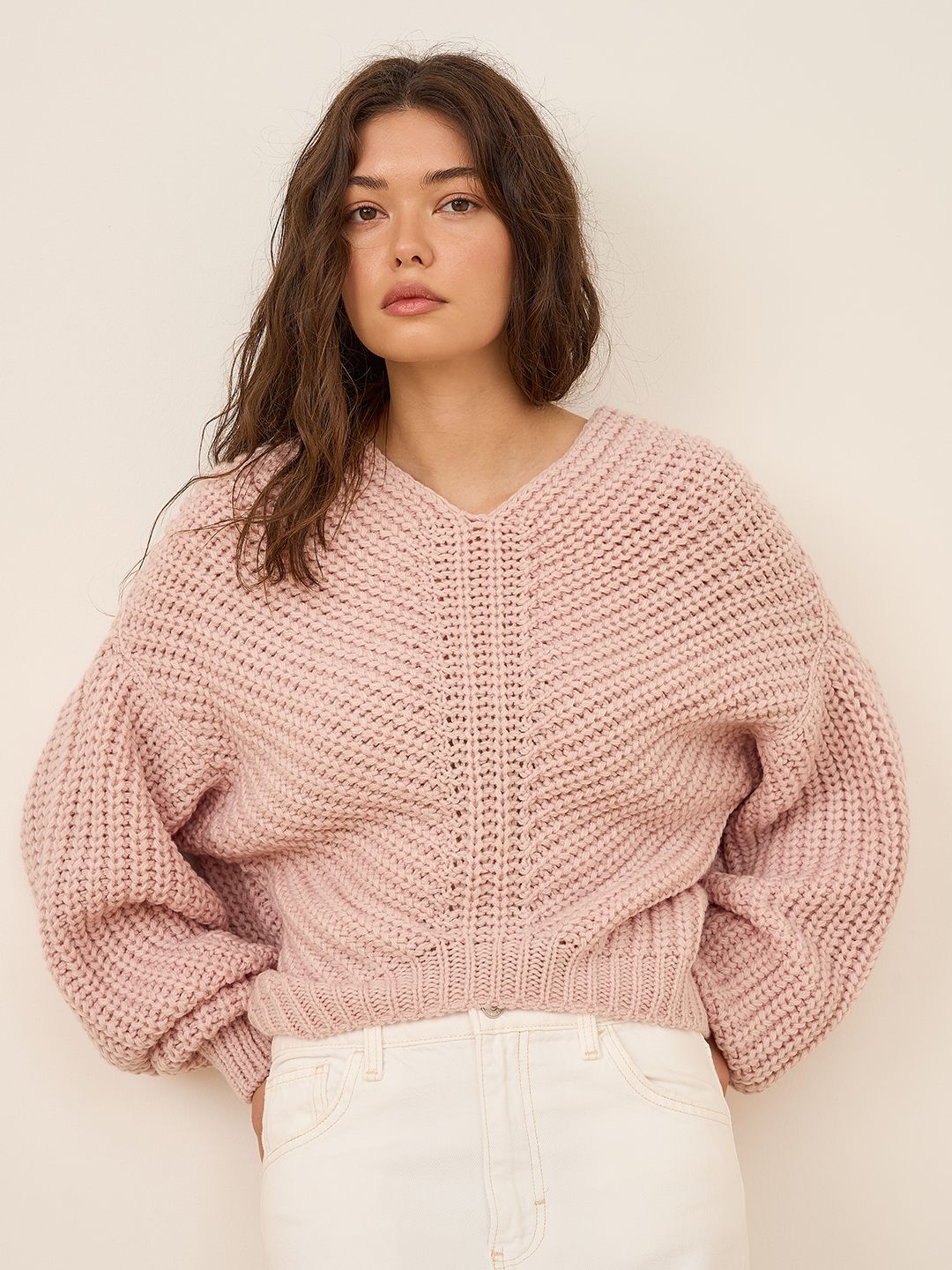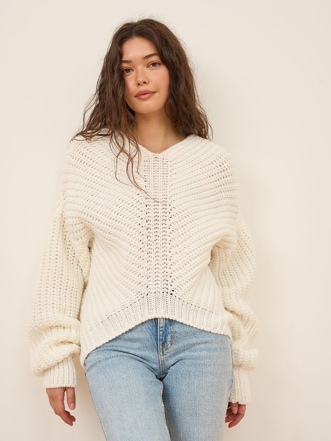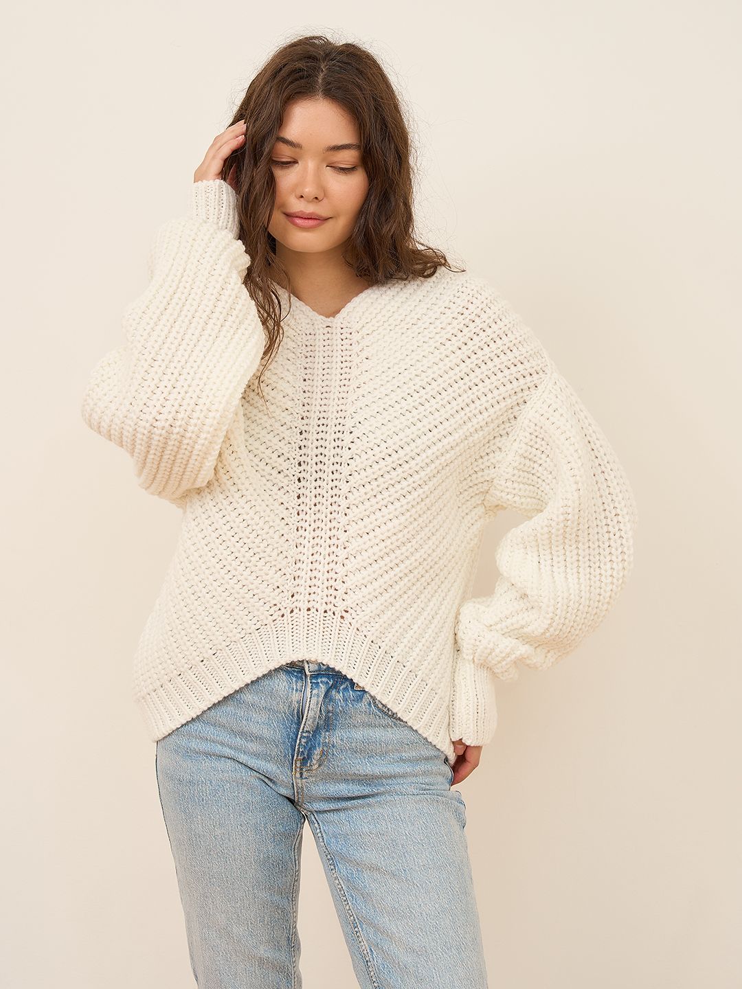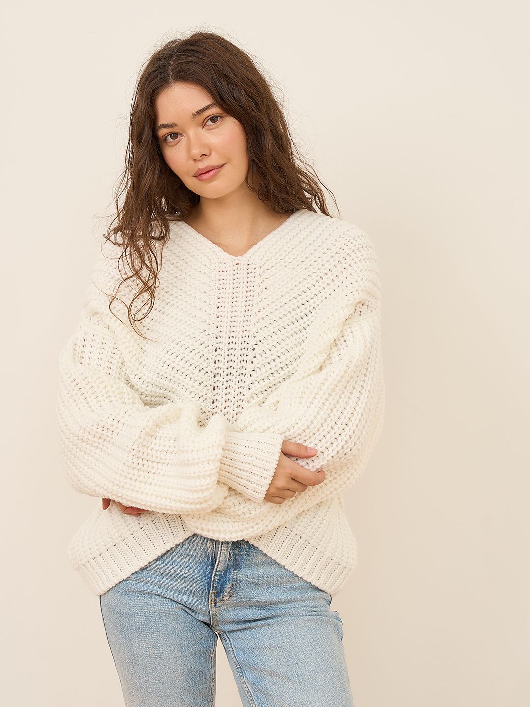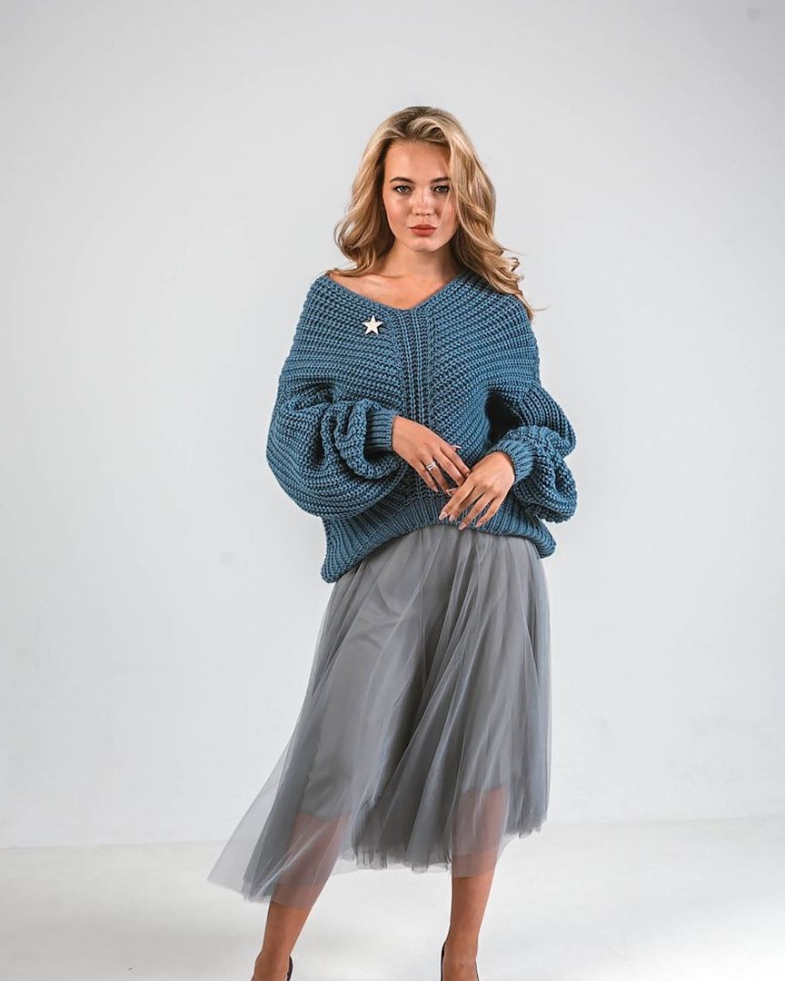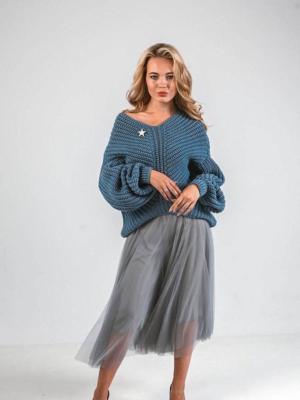 Свитер оверсайз вязаный крупная вязка